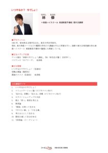 はじめまして、コーエンプラス代表の森本です。私たちは、10,000回以上の経験とケーススタディをもとに、講演会の成功と講師紹介のコンサルティングをおこなっています。この道一筋20年の提案力をもとに、自信を持ってサポートいたします。今後も継続的な成長に努め、より多くの方を講演会の成功に導けるよう、質の高い情報をお届けします。