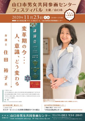 山口市男女共同参画センター主催講演会に、テレビ番組コメンテーターとしておなじみの弁護士 住田裕子さんが出演されました。