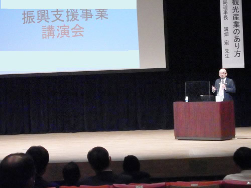滋賀県内で地元の市民や観光業者を対象にした観光物産振興支援の一環として、大阪観光局理事業・溝畑宏先生の講演会が開催されました。