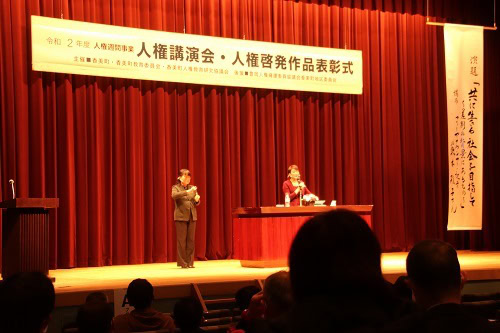 兵庫県香美町での人権週間事業にて、フリーアナウンサー 藪本雅子さんをお招きし人権講演会が開催されました。