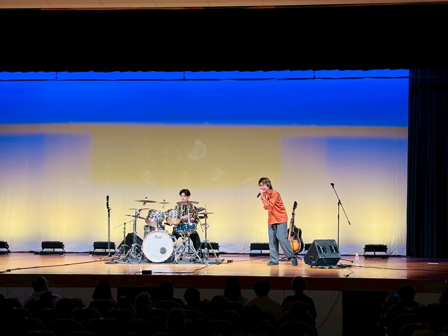 緞帳が上がると、「ルパン三世のテーマ」、続けて「千本桜」を迫力あるドラム演奏で披露。