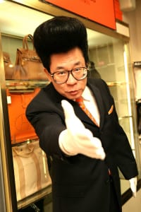 一度見たら忘れない、大きく飛び出たリーゼントと白い手袋姿の「ブランド王ロイヤル」森田勉さん。森田はサラリーマン時代、他の営業マンの5倍~10倍実績をあげていました。