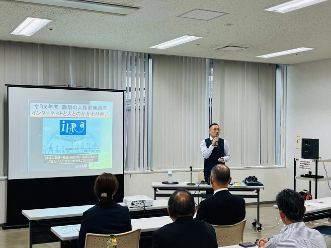 企業や事業者または人権に関心のある方々向けに開催された講演会で、お笑い芸人のスマイリーキクチさんにお話しをしていただきました。当日は、現地にて運営サポートもいたしました。
