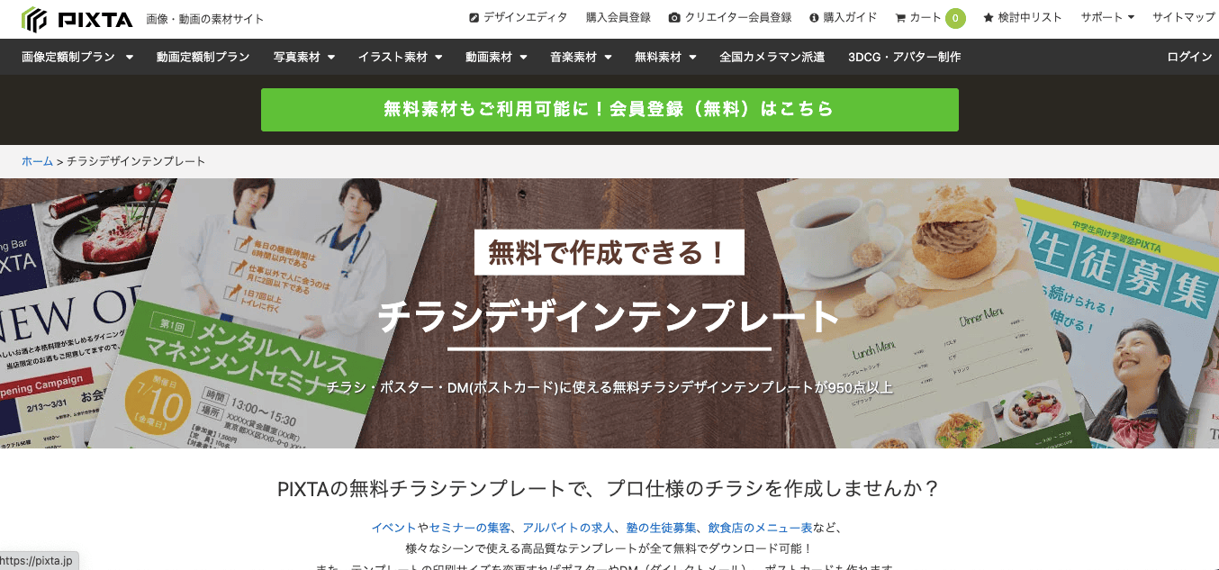 - フォトストックでお馴染みのPIXTAが提供している無料テンプレート