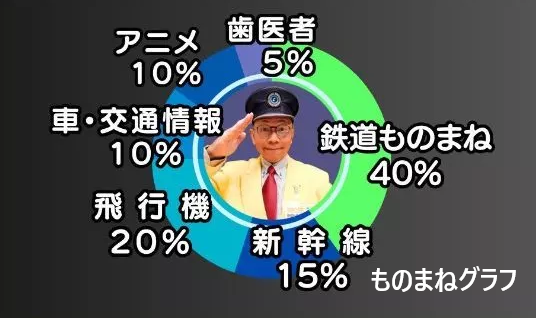 鉄道・飛行機ものまねと、スーパートークで盛り上げます。
